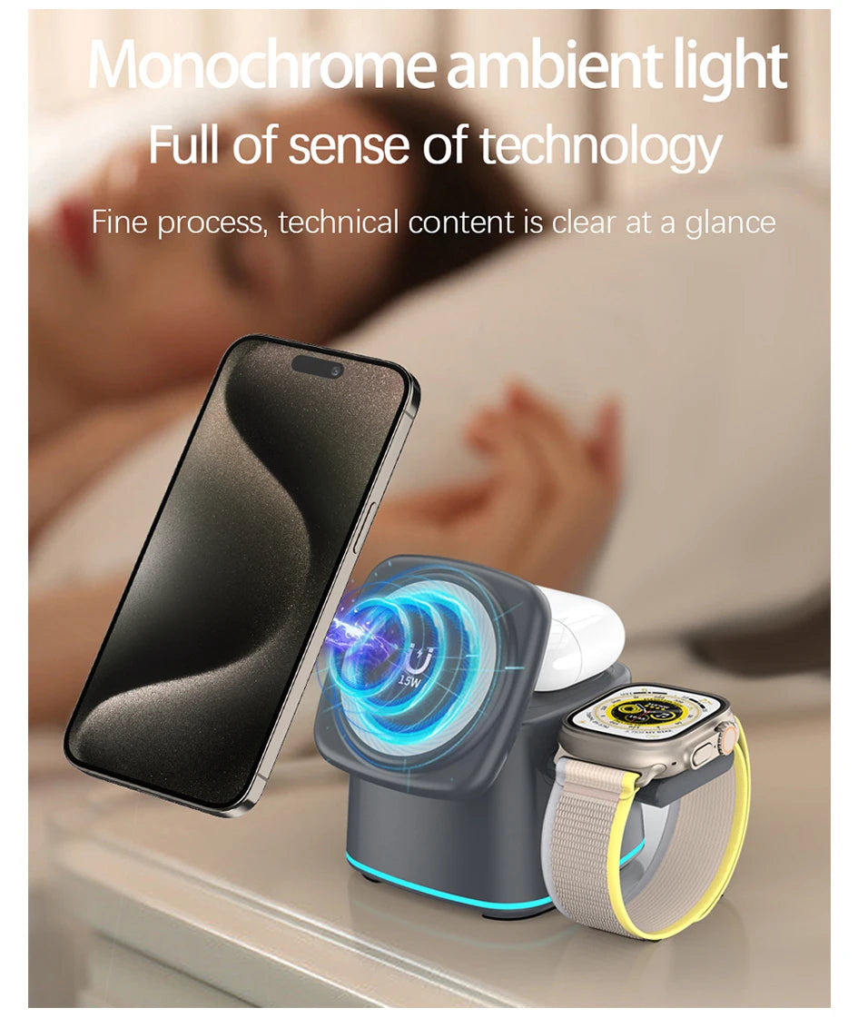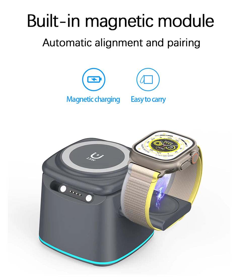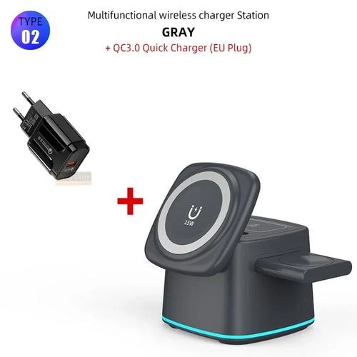 3-in-1 Magnetic Wireless Charger for Apple Devices - 15W Fast Charge